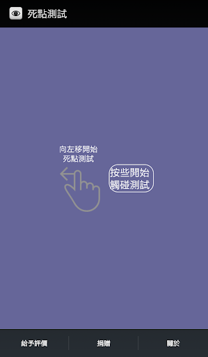 (1) 死點測試: 提供全屏幕黑/白/紅/藍/綠 - 目測屏幕上的死點/光點, 翻頁手勢來轉換不同顏色.