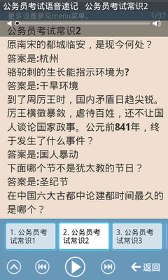公务员考试常识,采用语音播报,迅速牢记!支持TXT文本朗读,断点续传,本地搜索,书签,记忆等功能,您可以在各种场合下使用该软件,比如候车,坐车,跑步等不方便用眼睛看的情况下都可以使用该软件,轻松记忆,帮助您尽快的捧起金饭碗!