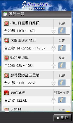 Bobe168 App自101年7月15日上線以來,不斷提供最即時的公路災情及預警性封閉資訊,讓用路人可以做出最好的行車路線規劃,以達到離災、避災的目的。