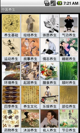 1.丰富齐全的分类,包含养生基础、经络养生、体质养生、气功养生、运动养生等等共20个大类,总能找到你想要了解的养生之道.