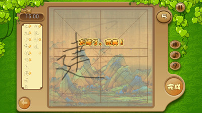 写字宝是一款练习汉字书法的游戏软件,让玩家能够深刻理解中国汉字的汉字结构,在娱乐的同时可以得到书法的学习,中国书法包含人类和谐自然的原始能量,写字宝游戏显示中国古代的文明和观念,丰富的写作技术与汉字字形结构的思维和实践练习,游戏玩家获得教育和技能。