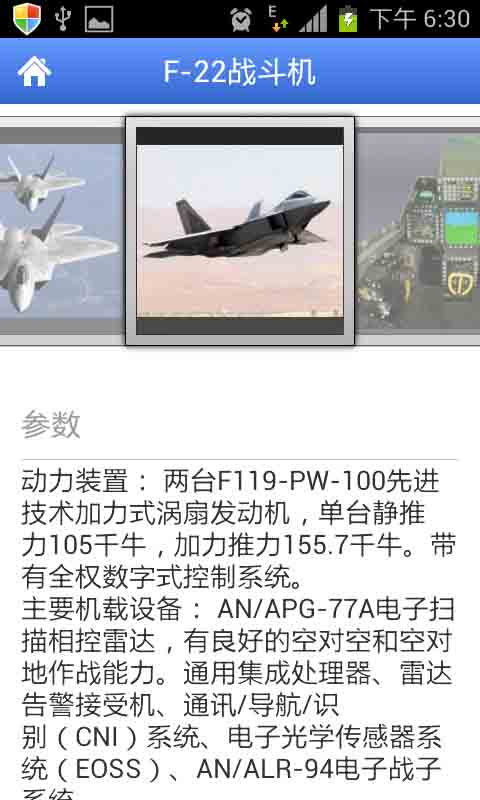 军事武器库介绍了当今世界主要的军事大国的现役主战装备,并收集了大量的军事壁纸,是了解军事装备的极佳应用,是军事爱好者的必备应用