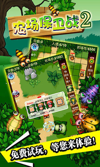 ☆倍受广大玩家追捧的《农场保卫战》正式升级为《农场保卫战2》 啦!这次升级除了保留原游戏的精彩之处,在新版本中农场宝贝们为了更好的保卫阳光农场,召唤了自然之神的力量,游戏中可以启动“时光之轮”,为虫虫们加上冰冻状态,降低虫虫的移动速度,可以更好地抵御虫虫以及BOSS的高速冲击。另外还可以召唤“闪电风暴”瞬间秒杀全屏的虫虫。为了让玩家玩得更轻松,阳光勋章加入在商城中获得的方式,可直接升级武器到你想要的级别,痛快地打击入侵的虫虫吧!更多精彩,免费试玩,等您来体验。