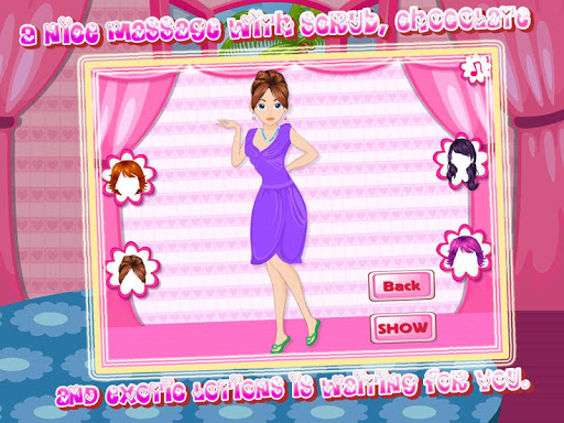 美丽的公主感觉很疲惫,决定去一个温泉沙龙,快乐的一天开始啦! 给她最好的按摩,让她开心、停下来享受水疗! 您可以擦后背并使用保湿乳液,然后清洗干净,使用泥状保湿乳液使肌肤光滑,最后使用护肤液,使干燥的皮肤看起来水润亮泽!