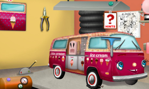 他是从它的孩子可以买冰淇淋,现在一个有趣的冰淇淋车,但他是一个有点伤感因为车坏了,你要修复在你的车库的车。