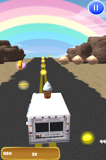 比赛你的冰淇淋车到彩虹的尽头,收集金币前进的道路。用你的硬币来解锁,包括持续时间较长的奖金,额外的生命,甚至生存模式升级束。橙色的圆锥体,滚动的巨石和更多的障碍,但要注意当你驾驶你的卡车。