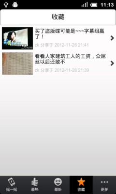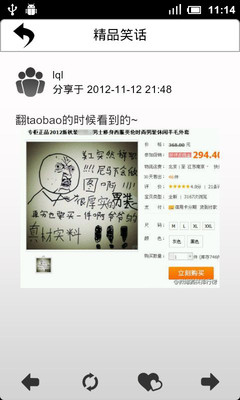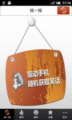 这是一款笑话应用,分享网络上最受欢迎的笑话。用户可以浏览最新发布的笑话,并提供摇一摇的方式来随机阅读笑话,还可以查看最热门的笑话。用户看到比较喜欢的笑话时,还可以点击收藏,方便以后在收藏页面浏览已经收藏的笑话。