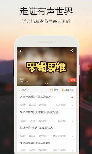 • 晓松奇谈、80后脱口秀、郭德纲相声、逻辑思维、锵锵三人行、糖蒜广播、新闻酸菜馆,想听啥都有!