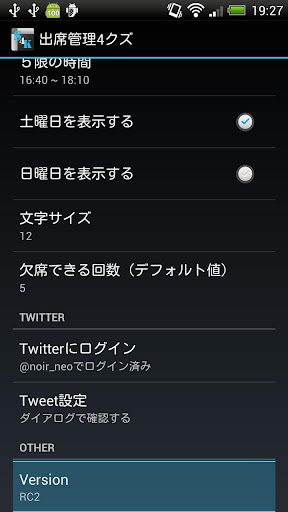 ・Twitterにログインしておけば出席ステータス追加時につぶやくこともできます。