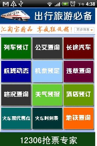 提供12306抢票专家,列车预定,公交查询,长途汽车,航班动态,机票预定,违章查询,天气预报,酒店查询,路况查询等,是你出行的好帮手!