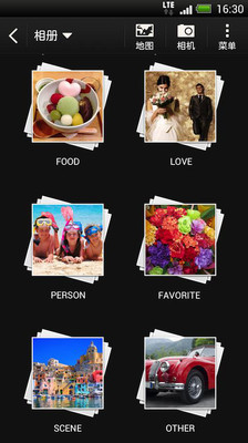 六种的图标是 “食物”,“人”,“风景”,“爱情”, “喜欢”, “其他”。