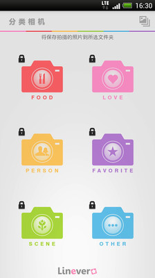 通过选择图标拍摄照片后, 到对应图标的文件夹分类照片。
