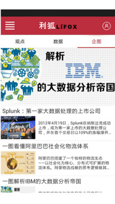 “利狐网”聚焦于新概念、新产业、新模式,创新打造“观点”“数据”“企图”三大栏目,充分运用移动互联网、云计算、大数据等新技术,为中高端人群搭建国内独有的深度新知平台和圈子。
