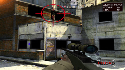 游戏中的你是一名出色的狙击手,勇于冲到战场前线打前锋。你的使命是利用仅仅两把狙击枪,端了对手的一个秘密营地。屏幕右下角是切换键,对手有可能出现在任意地方,迅速锁定并瞄准狙击,争取例无虚发。