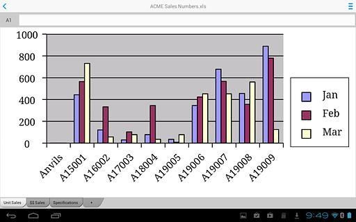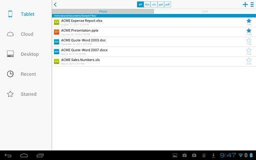 使用 Documents To Go 主要应用程式检视 Microsoft Word、Excel 与 PowerPoint 档案和附件。