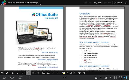 ?拼写检查,预测文本键盘,PDF格式相机扫描仪,兼容微软字体包和许多可作为在应用程序升级到的OfficeSuite更高级的功能。