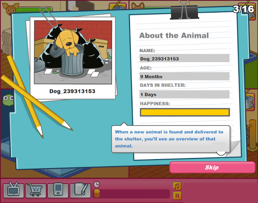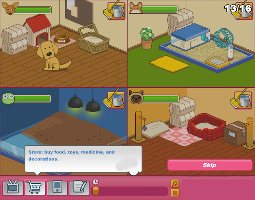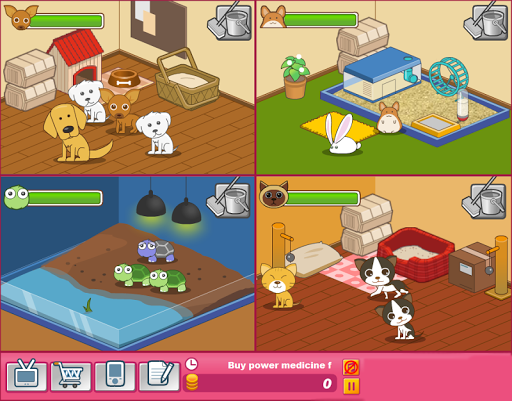 你的目标是要确保在这些房间里所有的动物都是快乐和照顾。你可以在每一个动物触摸,看其状态,并执行诸如饲养动物的行为,与它玩耍等。