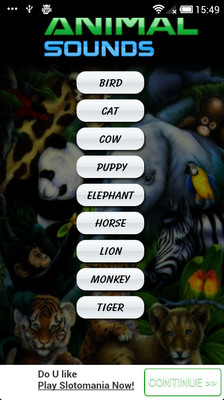 动物的声音在一个应用程序,应用程序有很多声音。你可以找到的声音:青蛙、猴、蟑螂、黄蜂、大象、狮子、狼。