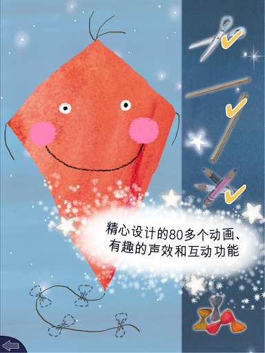通过这本数码图书的App,孩子们可以用全新的方式体验《劳拉的星星》,并通过许多互动式游戏直接进入不同故事的场景中。孩子们可以自己动手制作劳拉和托米的风筝、布置桌子、锄草、用风筝和小鸟游戏。丰富的动画和有趣的声效让阅读变得更有滋有味。