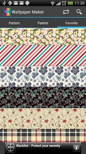 您可以選擇不同的模式提供數千由http://www.colourlovers.com/之一,並設置為您的桌面在您的手機或平板的壁紙或Desctop的動態壁紙。你可以設置你的屏幕上可以發現的第二個選項卡上的平穩重複調色板。只是向下滾動,滾動新的和新的圖像或調色板將可用。選擇任何你的背景圖案或調色板!如果你想有你的背景填充模式或在某些特定顏色的調色板,你可以選擇這種顏色過濾器在屏幕的右上角。