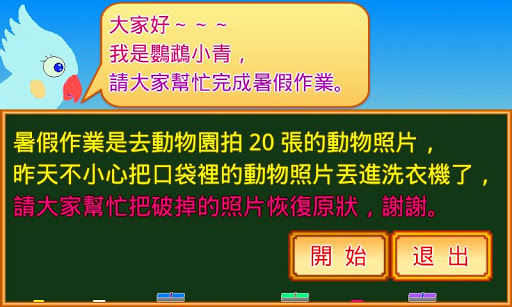 請大家幫忙鸚鵡小青把破掉的照片恢復原狀吧。