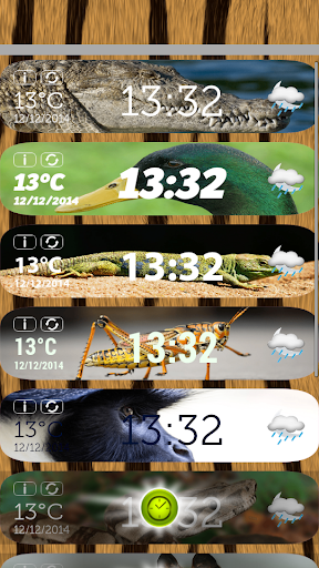 選擇你喜歡動物的小部件的背景圖像,並觀看獅子,狼,可愛的是你的主屏幕的一部分狗或鳥類。如果你喜歡異國情調的動物,把蛇或鱷魚是你真棒部件的一部分,欣賞美景。塔上的動物和獲取有關天氣,可以對你有用一些額外的信息。旁邊的天氣情況,你可以看到溫度,壓力,雲量,濕度,風速和日出和日落的確切時間的說明。