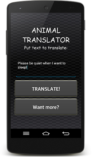 你想與動物溝通嗎?你想為你的貓或狗翻譯的東西嗎?動物能聽懂你 !所有你需要做是用動物的翻譯 !它將翻譯你的話語,這樣的動物可以聽懂你 !貓、 狗、 鸚鵡會理解你 !這動物的譯者包含貓翻譯、 狗譯者和鳥 !當然,這個應用程式是一個惡作劇 !你可以用它開玩笑 !
