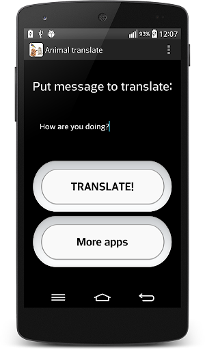 動物翻譯允許您為貓的語言、 狗的語言或鳥的詞的翻譯 !現在你的動物就會明白你的話 !你可以與你的狗或貓 !動物譯者可以播放 mp3 檔作為譯出語 !如何使用它呢?輸入你的動物的消息。動物的譯者將生成 mp3 檔,請稍候。播放該檔-你的狗或貓會明白它 !當然這款應用程式只是一個笑話 !免費下載動物翻譯 !