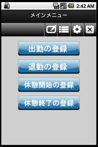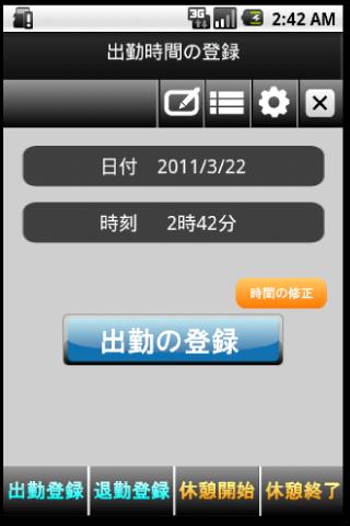 出勤、退勤、休憩時間の開始、休憩終了を登録できます。