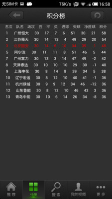 北京国安安卓客户端,向国安球迷奉献最新的国安视频,赛程信息及往年赛事回顾、积分榜等。
