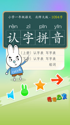 1、小学语文一年级课本北师大版(北京师范大学出版社),新版课本上册和下册认字表、写字表中1094个汉字的拼音识字、组词的学习与练习;