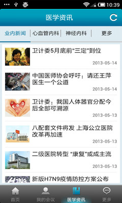 4、 会议资讯,随时浏览业内新闻,各科室医学最新进展
