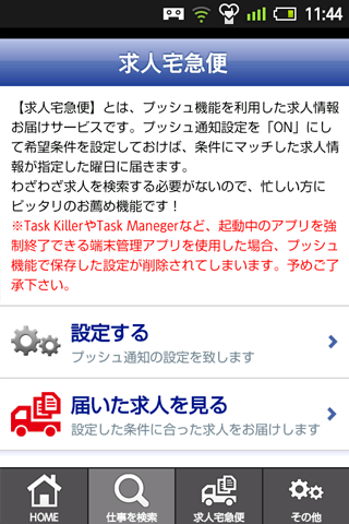 ・プッシュ通知機能を利用した新着求人情報お届けサービスです。