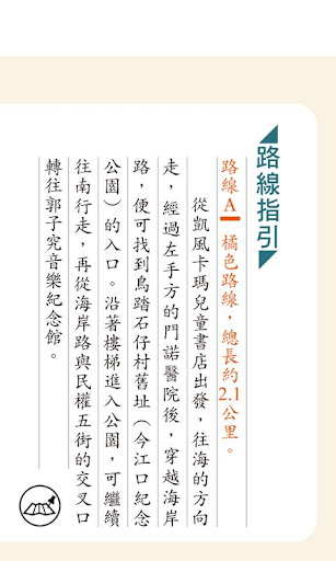 圖文並茂的內容、適合閱讀的文字大小與文章長度,可依讀者需求,出發前先行閱讀或一邊步行一邊講故事給孩子聽,均適宜。並有精心設計的QA小互動與小動畫,讓家長與孩子在步行現場不無聊,傳遞知識的同時也有樂趣!