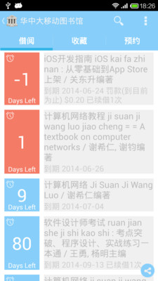 为我科huster们提供移动图书馆服务.用户可以使用该应用检索我科图书馆馆藏资源,通过借书证登录学校图书馆账户,提供借阅信息查询、续借、预约等功能,此外,还提供多个特色功能:倒数天数提醒、收藏书目、热书榜、华中大应用墙、爱分享、爱扫书、爱讲座、爱新闻.