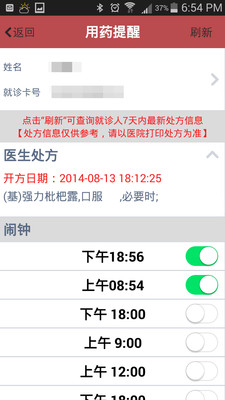 用药提醒:处方查询、用药提醒;