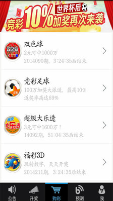 ◆主要彩种:竞彩足球、传统足球、双色球、福彩3D、七乐彩、大乐透、排列3、排列5等热门彩票均可投注;