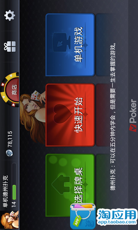 微扑克是一款简单到极致的德州扑克游戏!微扑克独创了单机挑战模式,如果您寻求刺激可无需注册一键联网挑战!微扑克致力打造一款简单,纯粹,极致体验的新一代德州扑克游戏。