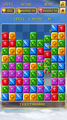 ★单机消灭宝石:游戏非常简单,点击两个或更多相邻的钻石就可以消除它们,并尝试尽可能多得点分!!