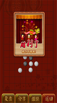 单机版五子棋,界面清新,AI高效稳定,不占流量,尽可能大的显示标准棋盘。特有复盘截图功能,下完一局,选择复盘加点评,即可将对局情况截图转发至微博与其他五子棋爱好者交流学习。 重大更新提醒:新增棋圣挑战赛,关关精彩,关关精妙,快来挑战吧。挑战过关,转发微博,有图为证,争当冲关第一人!记得转发给好友一起玩哦~