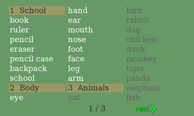 单词卡软件为帮助儿童在闲暇玩耍的时候,能以简单轻松愉快的方式学习、记忆和背诵单词而设计。它秉承我们一贯的设计理念:简单、实用、有效。包括浏览、拼图、测验三种模式,不但可以浏览配图配音的单词,还可以用单词来玩拼图游戏,或者进行小测验,用多种方式简单轻松地学单词记单词。装在手机上,可以随时随地使用,充分利用零碎、闲暇和玩耍的时间,让孩子灵活愉快地来学习巩固单词。另外,使用时,不需要网络,不会产生流量,也没有广告,绿色安全。