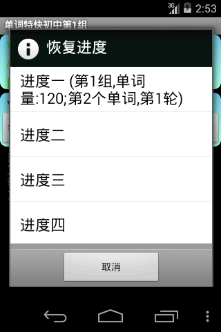 [进度]让您及时了解现在属于第几轮,背到哪个单词了;