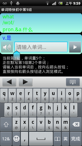 第一轮:五个单词量(每背完五个即进入后面五个单词)