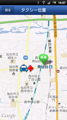 注文確定後、タクシーがどこまで来ているか地図上で確認できます。