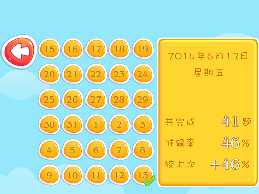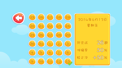 本app會記錄孩子最近一個月的每日成績,記錄答題時間、準確率、總答題數和答題速度。