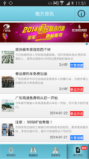 “南方通”基于地理位置为广大车友提供各类实时交通出行信息及智能推送,真正实现“智慧出行”。