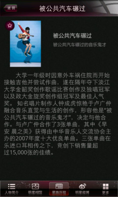 一个大男孩带着一把吉他,弹着那属于他自己的音乐风格——那就是卢广仲。本应用中介绍了卢广仲的详细信息,以及他的专辑照,和他的音乐之路,让我们更加深刻的去了解这个“音乐鬼才”。