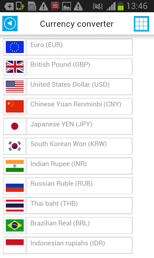 - 货币转换器:欧元,英镑,美元,中国佑安,日元,韩元,卢比,俄罗斯卢布(离线)