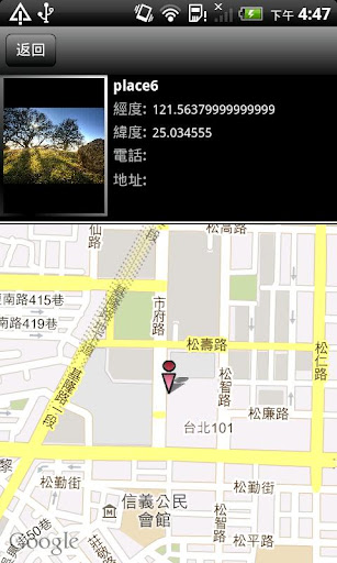 6. 地點記事本: 你可以新增編輯你的地點記事本,每個地點包含地點名稱,gps定位資訊和相片等等資訊