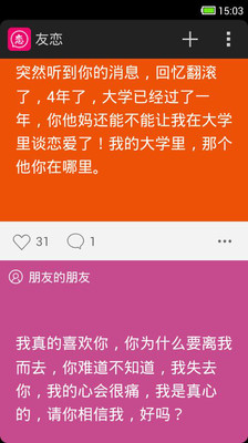 友恋—朋友圈表白神器,首款基于通讯录的恋爱社交,最火基于熟人表白的手机应用。你可以和朋友们毫无顾忌地匿名像你默默心爱的人表白,让有情人终成眷属!你与Ta的距离穿越至-17CM不是白日梦!谁用谁知道,你懂的(*^__^*) 。